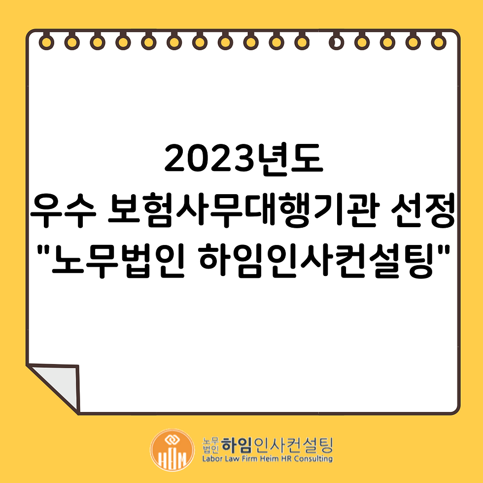 그 결과 노무법인 하임인사컨설팅이 2023년도 우수 보험사무대행기관으로 선정되었습니다.